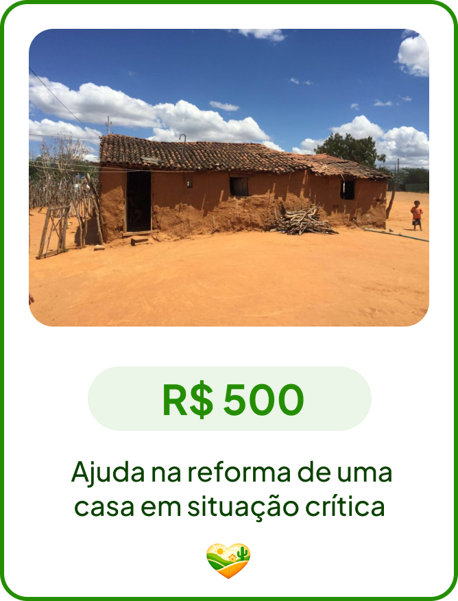 Existem famílias no sertão nordestino vivendo em casas de barro, sem água, sem alimento e sem o mínimo para viver com dignidade.